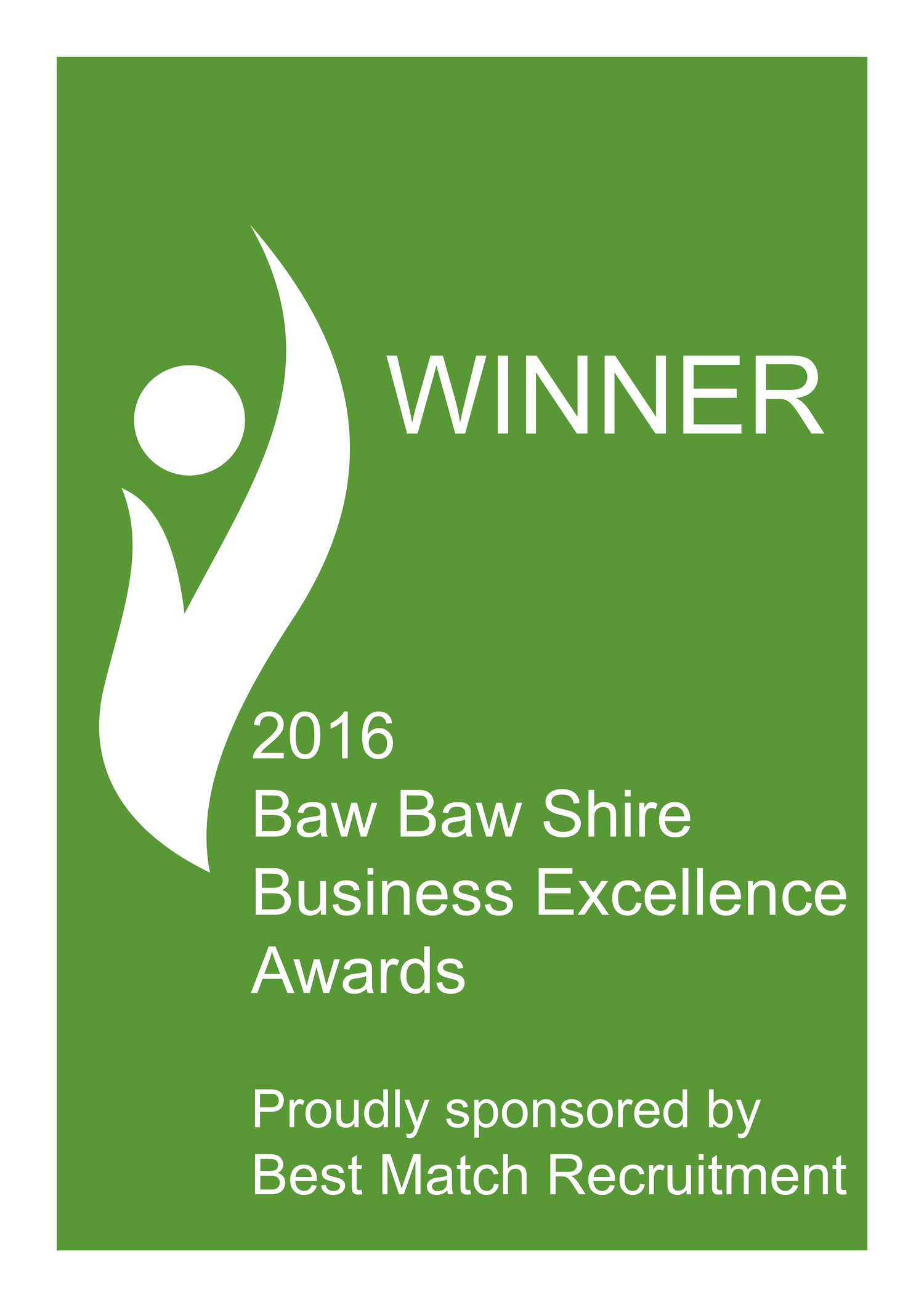 We are very proud to have been announced winners of two categories at the Baw Baw Shire Business Excellence Awards in 2016: