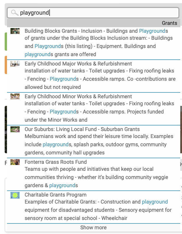 2. Keyword SearchStart typing in something about your project, and suggested grants will pop up for you.