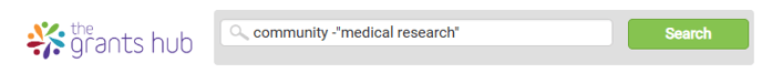 - Combine search terms, exact phrases, and exclude words - all at the same time. For example, community -"medical research" will search for grants that include the word community but do not include medical research.